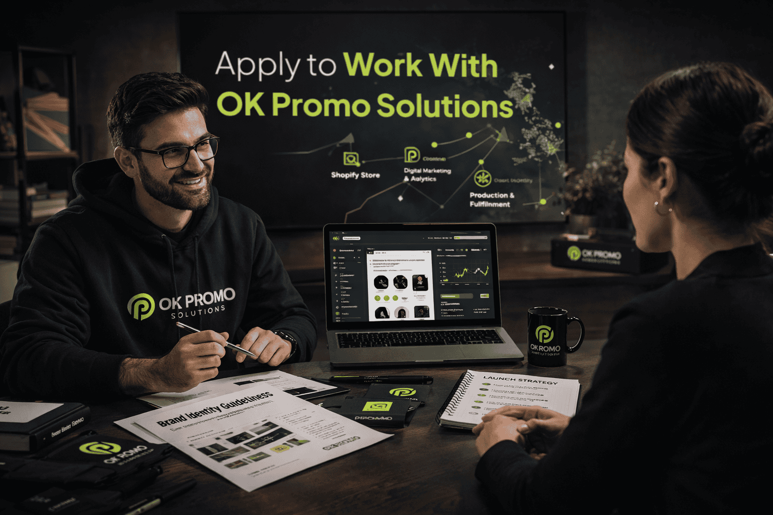 The next step is to apply for a discovery call. We will review your current stage, brand direction, and whether OK Promo Solutions is the right fit for what you are trying to build.